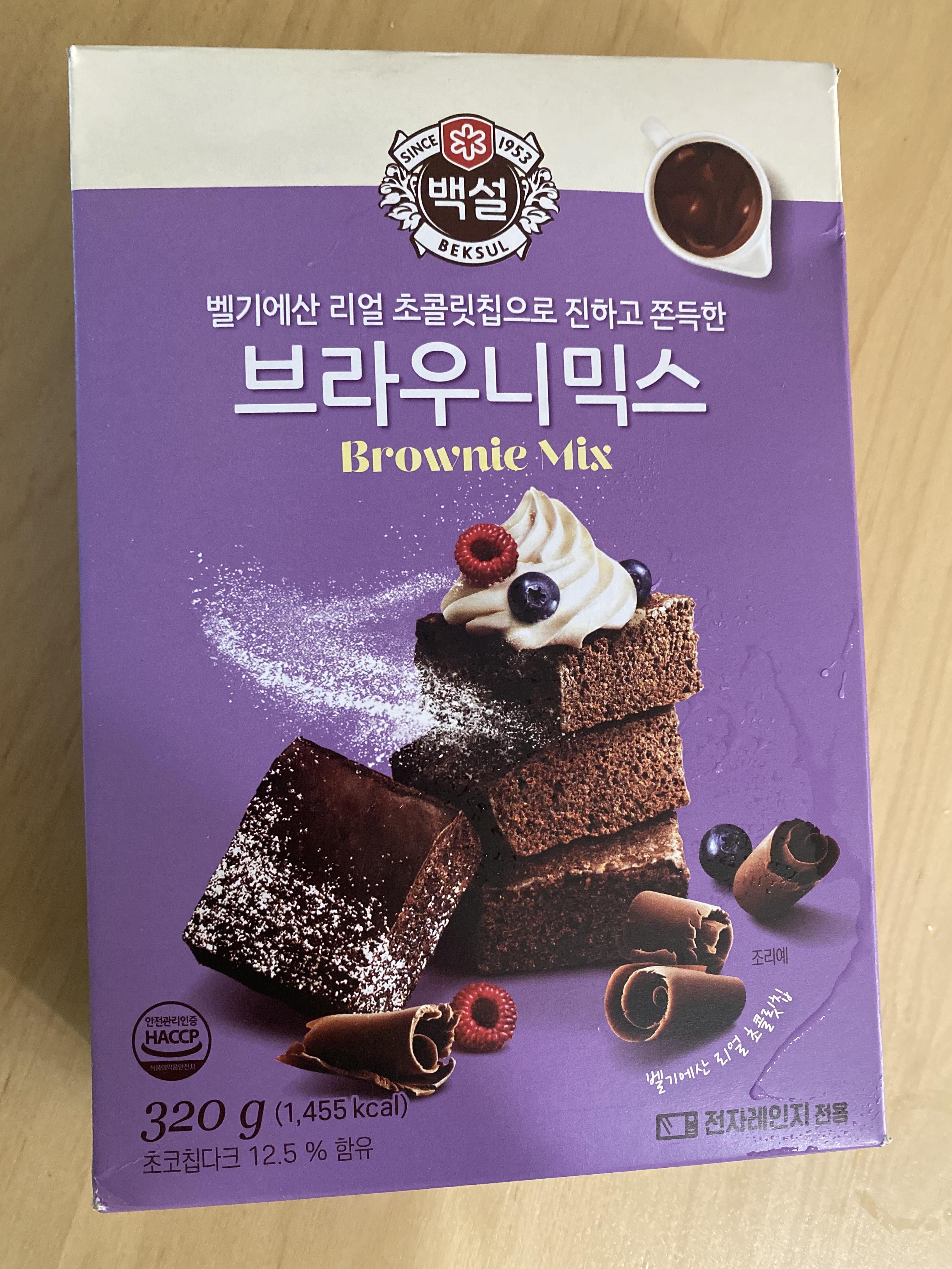 저는 백설 브라우니 믹스를 사용했는데요, 벨기에산 리얼 다크초콜릿칩이 들어있어서 그런지